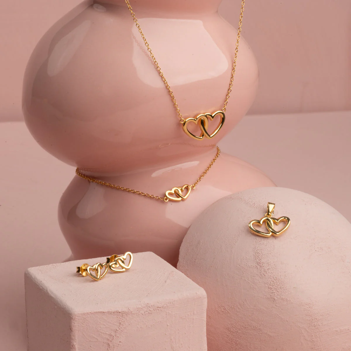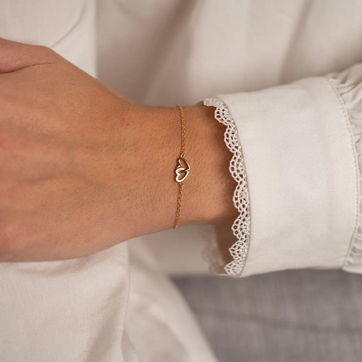Ett hjärtarmband i återvunnet 18-karat förgyllt silver. Armbandet är designat med två sammansatta hjärtan i mitten av armbandet, som är kopplade i själva kedjan.