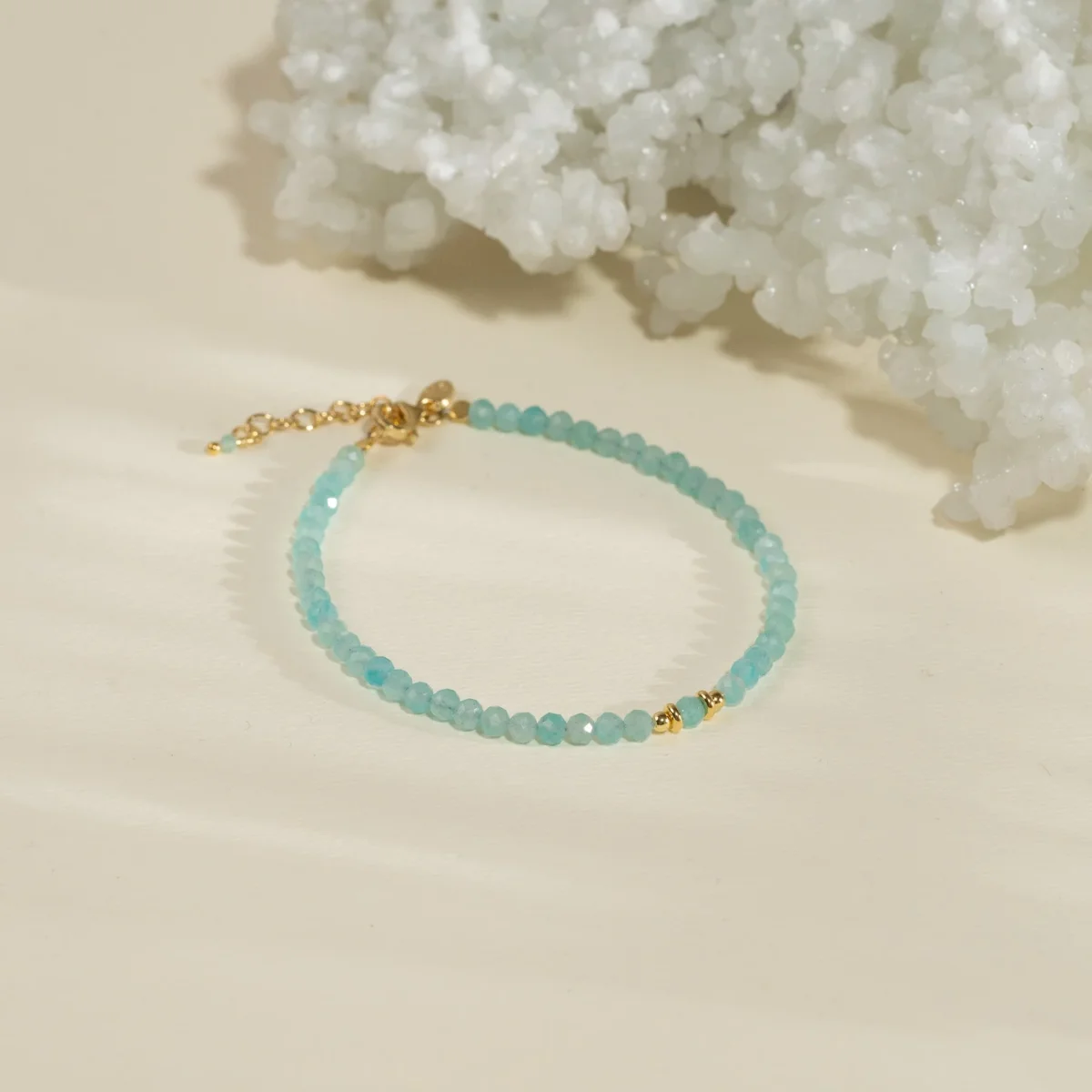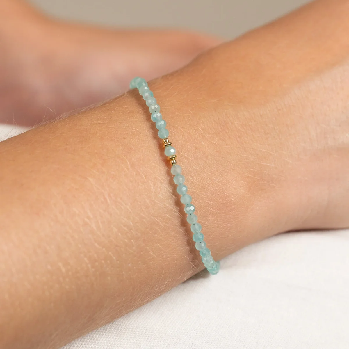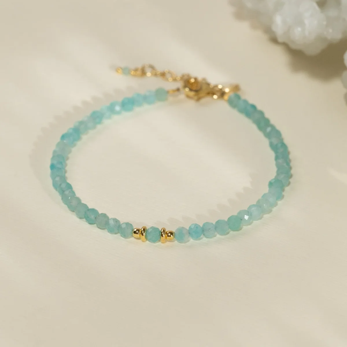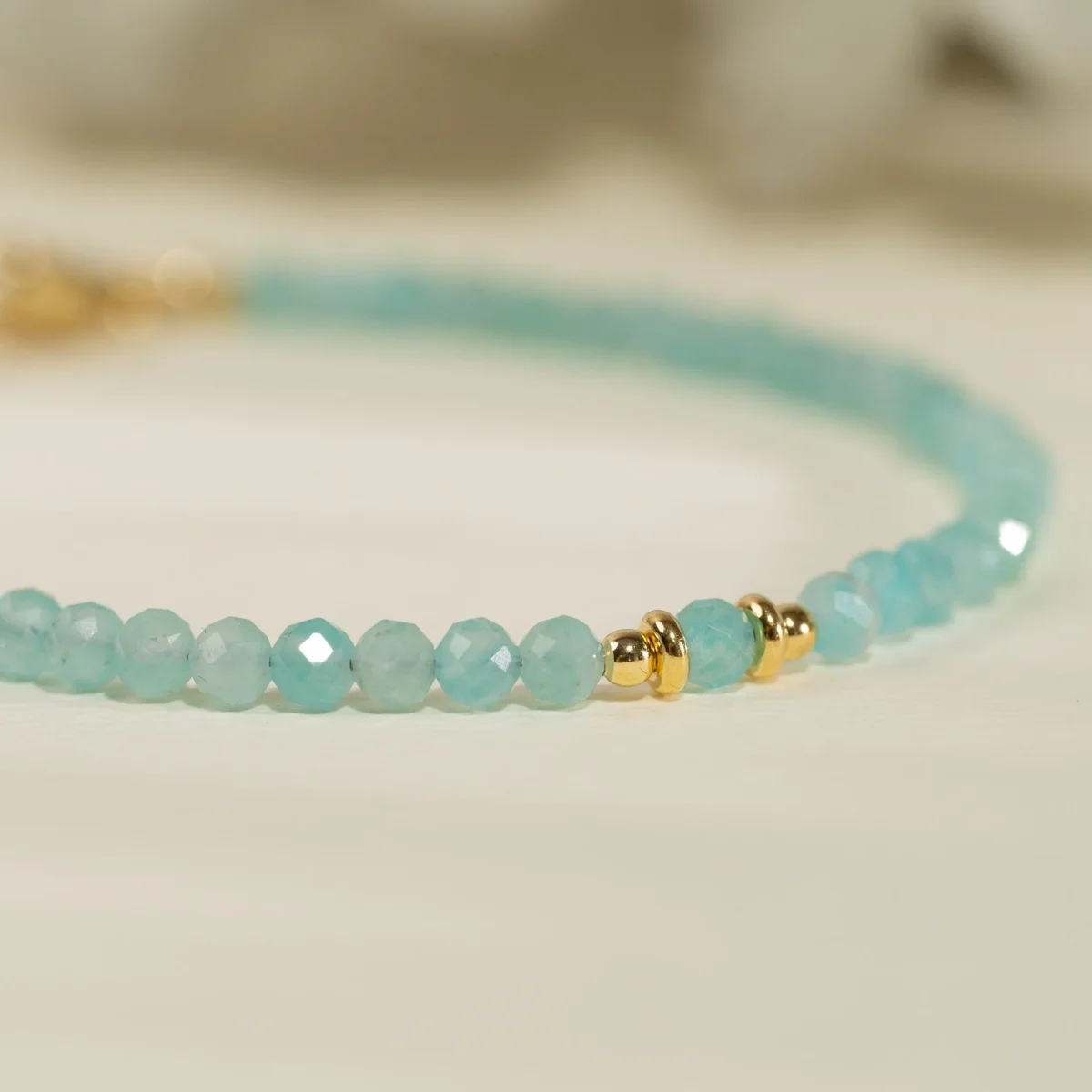 Armband med fasettslipade turkosblå amazonitstenar i 100% återvunnet 18 karat förgyllt 925 sterlingsilver.