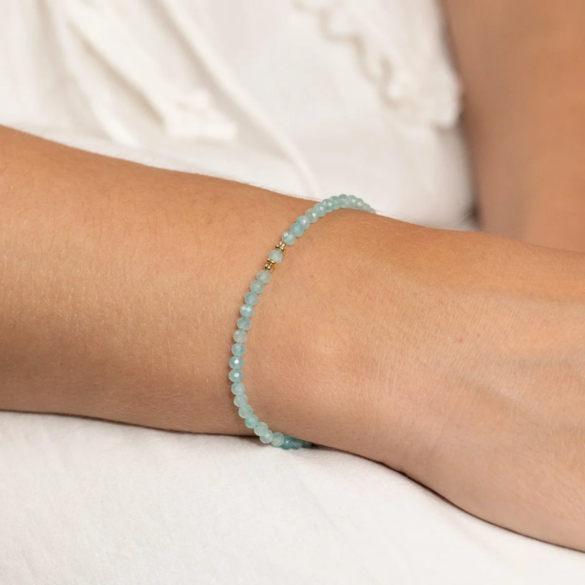 De fasettslipade amazonitstenarna skapar ett vackert spel i ljuset och ger ett elegant uttryck. Armbandet kan bäras för sig självt eller kombineras med andra smycken för en mer personlig look. Perfekt för dig som vill bära ett smycke med en vacker grön färg och fina detaljer.