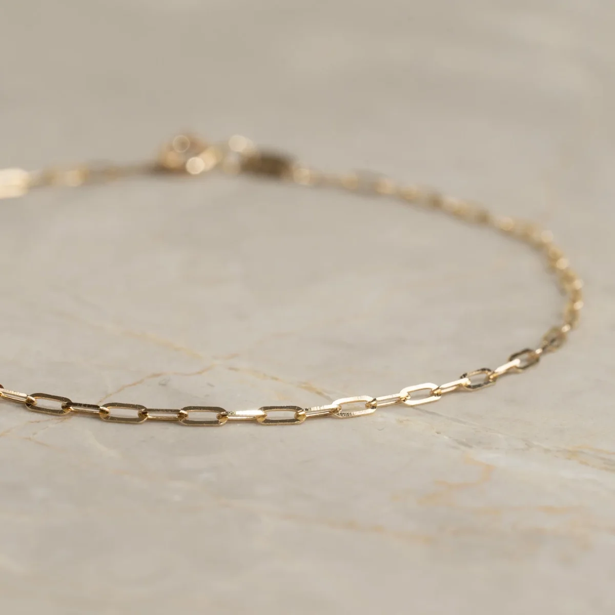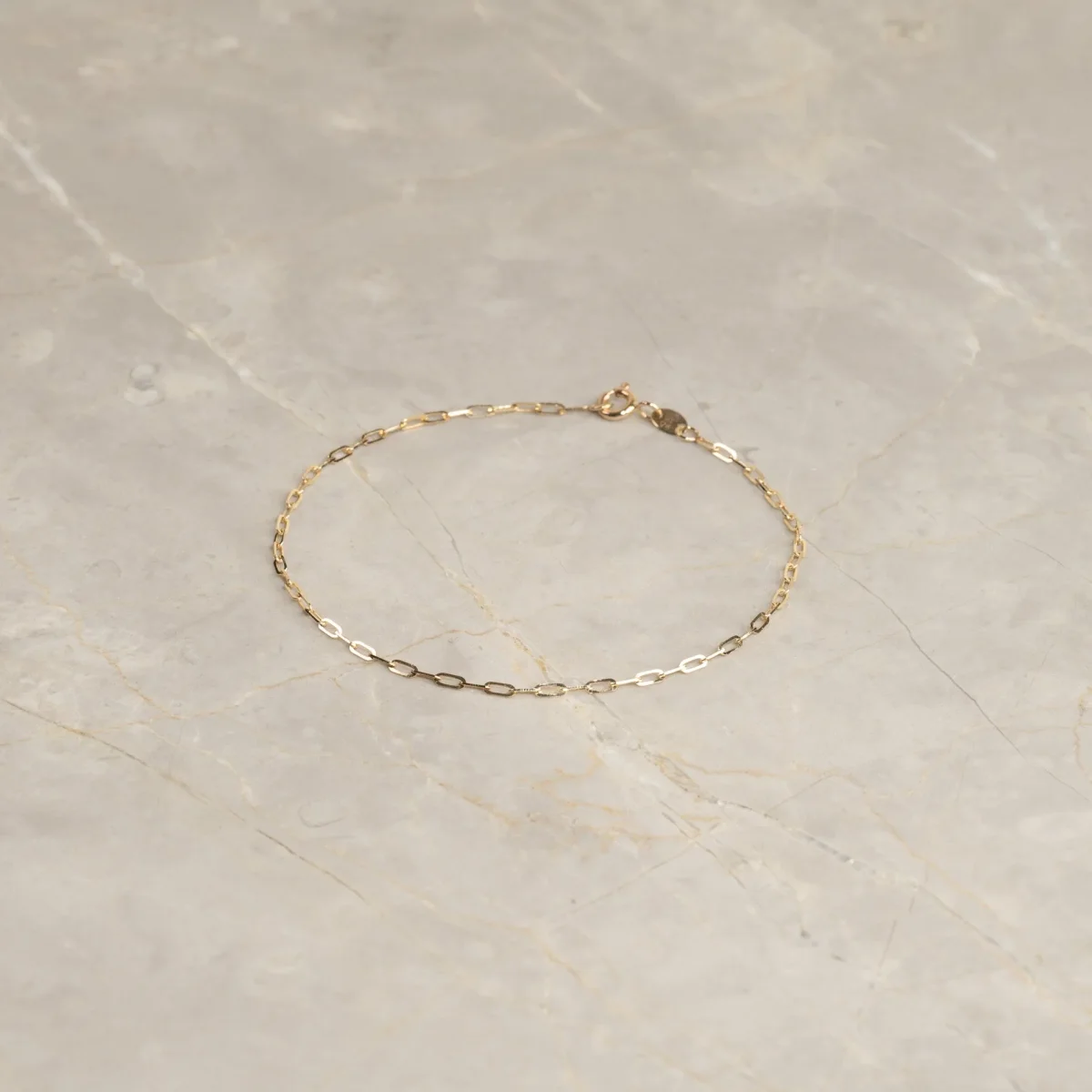 Vårt Alma medium guldarmband är tillverkat av 100% återvunnet massivt 9 karat guld. Armbandet är tillverkat med en liten paperclip-kedja med avlånga öppna kedjelänkar.