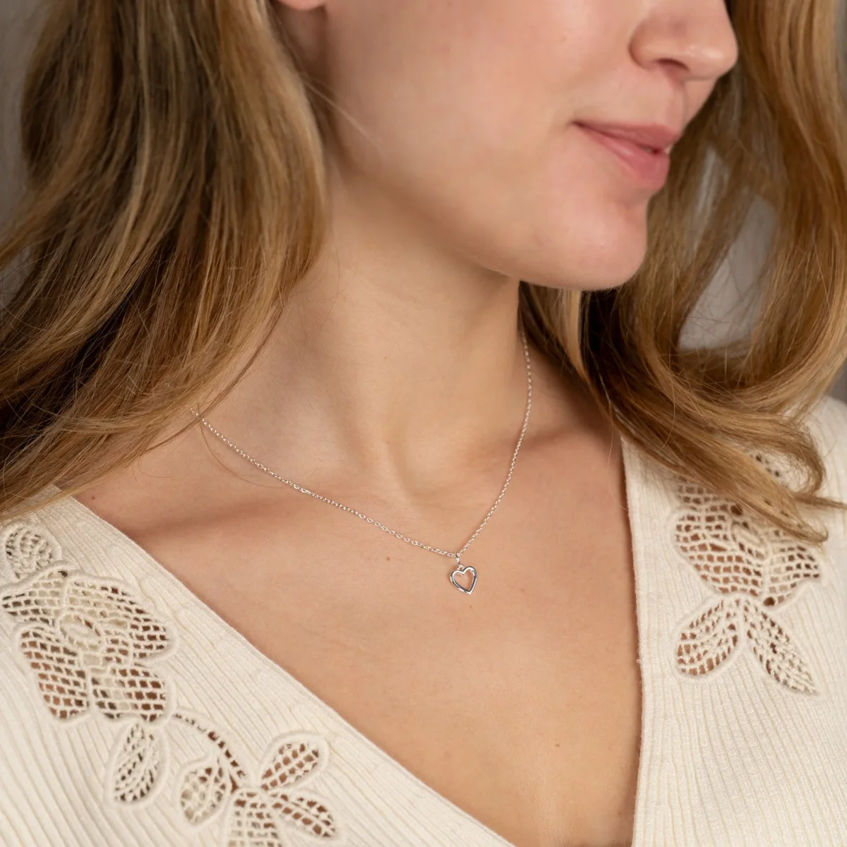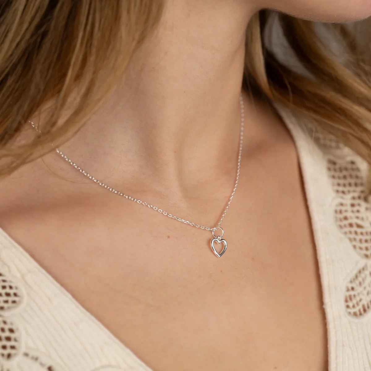 Hjärthänge i återvunnet 925 sterlingsilver. Hänget är format som ett hjärta, vilket ger en elegant och helt klassisk design. Berlocken mäter 9 mm i höjd, 9 mm i bredd och har en tjocklek på 1,2 mm.