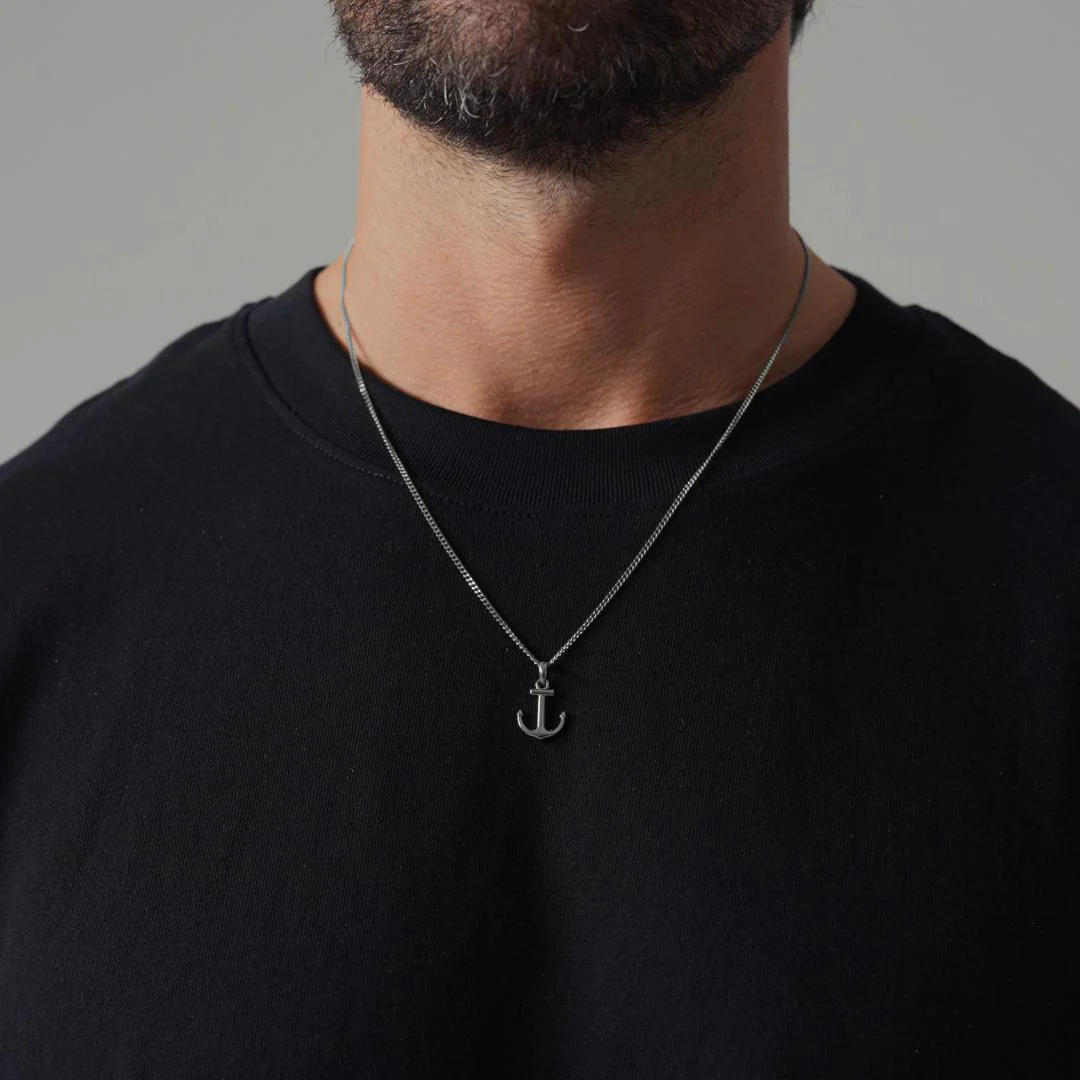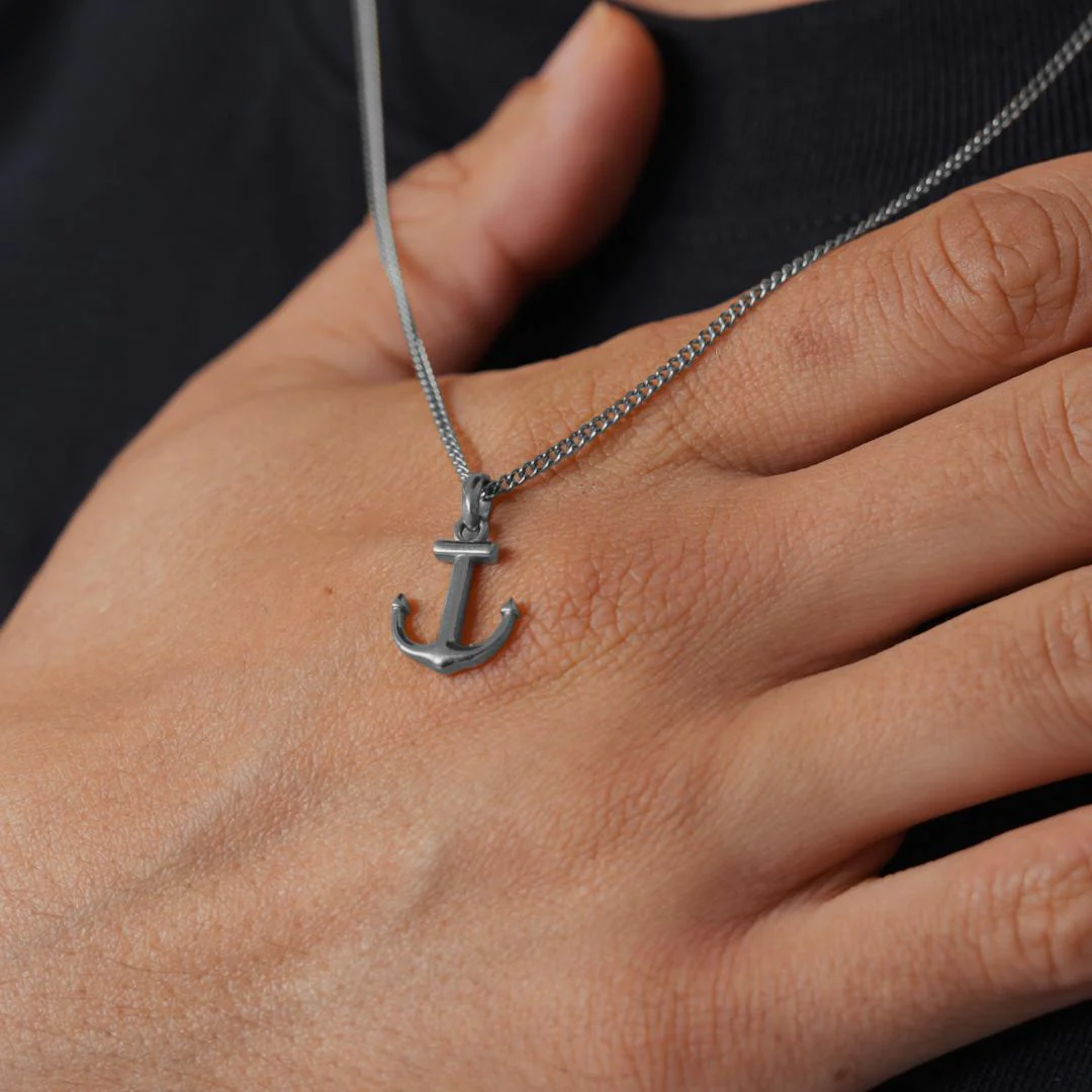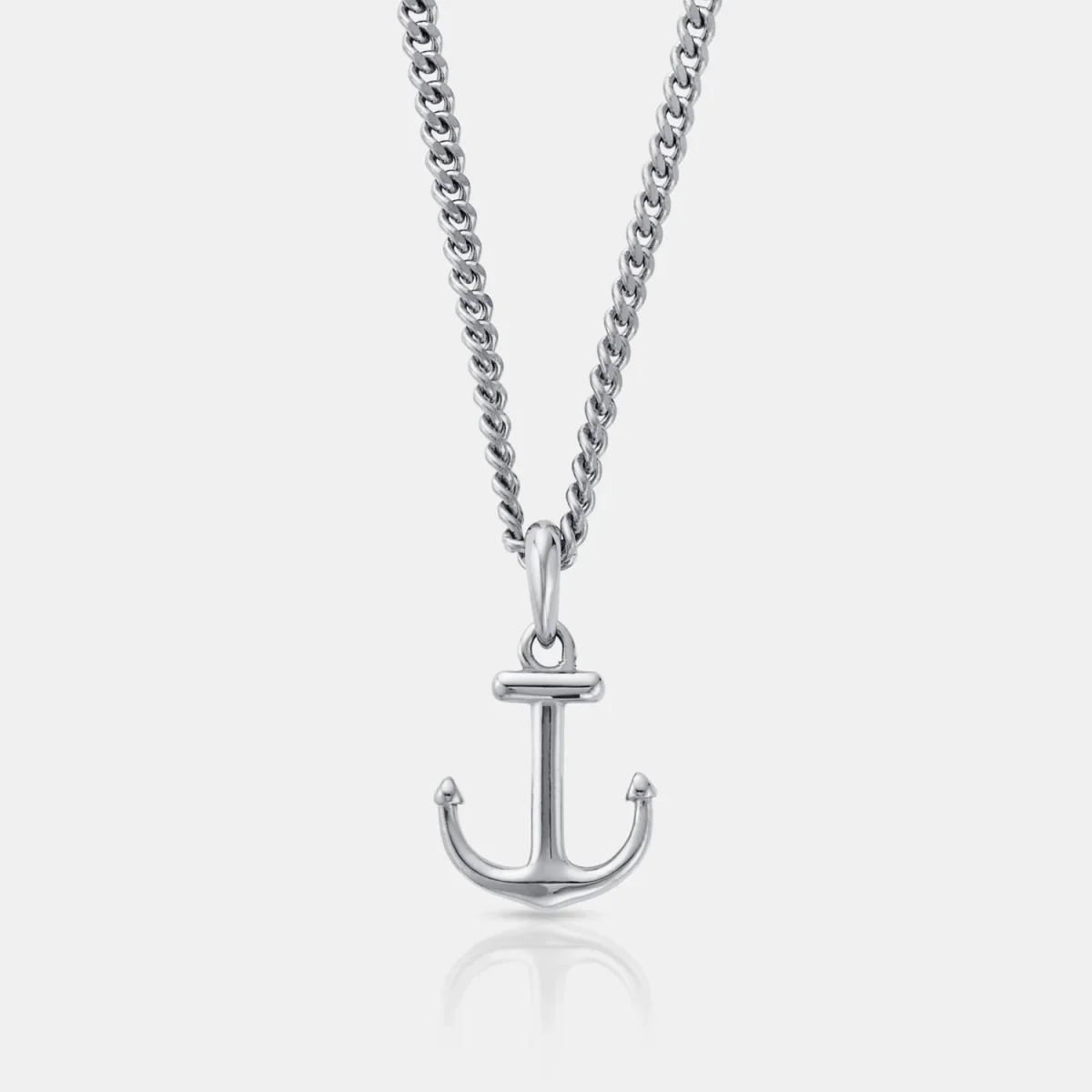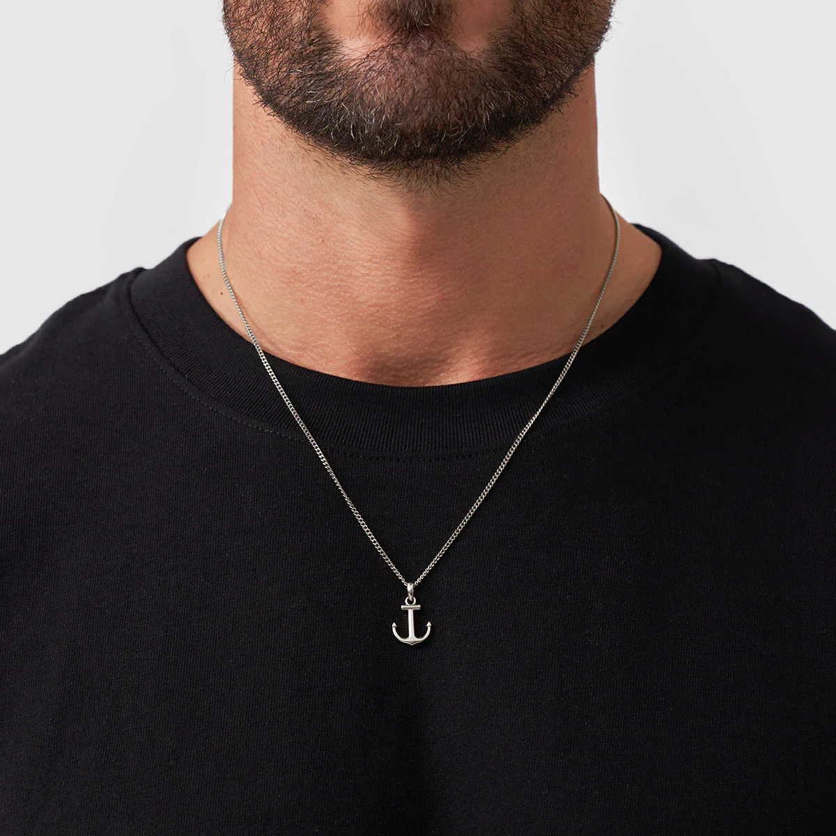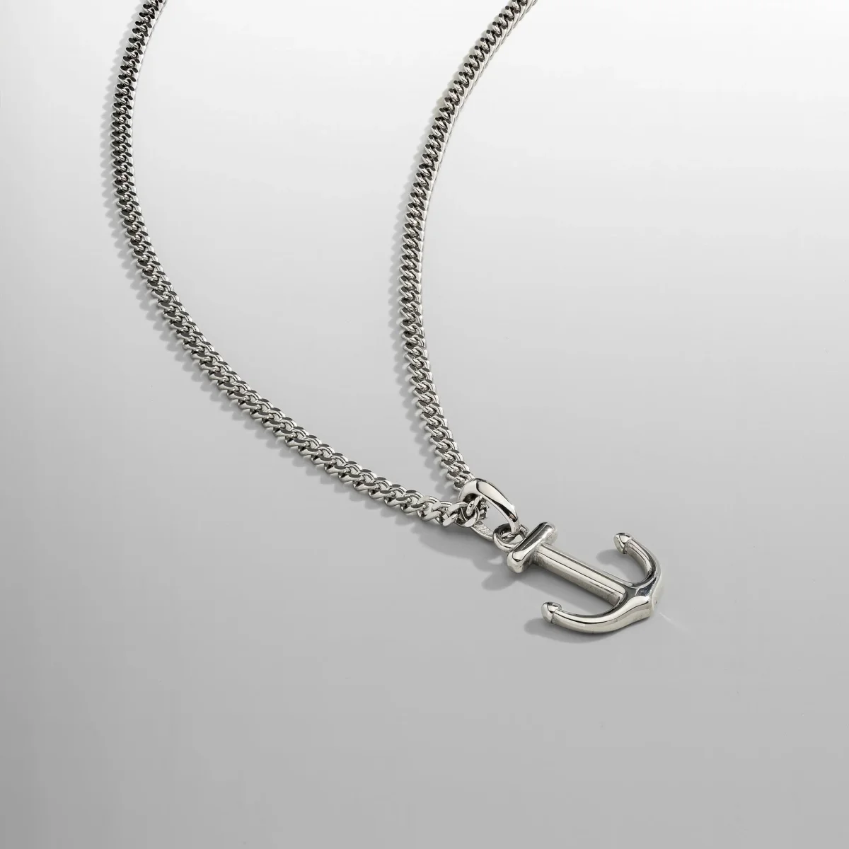 This silver necklace features a precisely weighted anchor pendant, a timeless symbol of stability and strength. Wear it daily to stay grounded, find peace, and embrace the freedom of being exactly where you are. Suspended from a premium silver bail and 2mm Cuban link chain, it’s finished with our signature scratch and fade resistant protection.