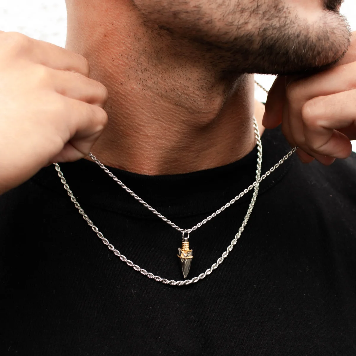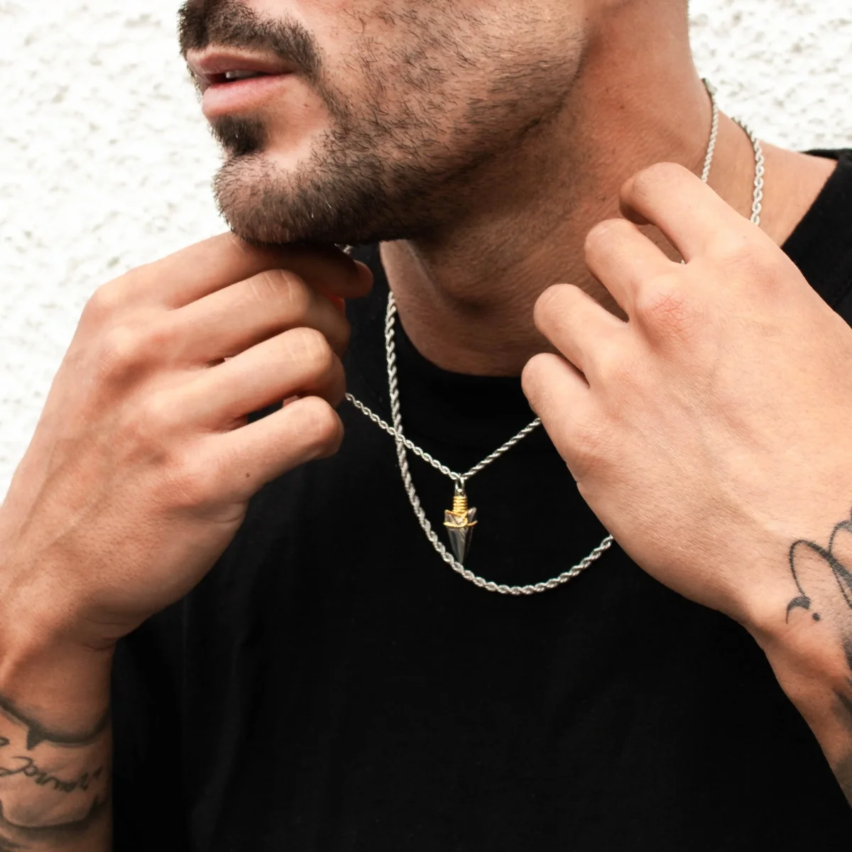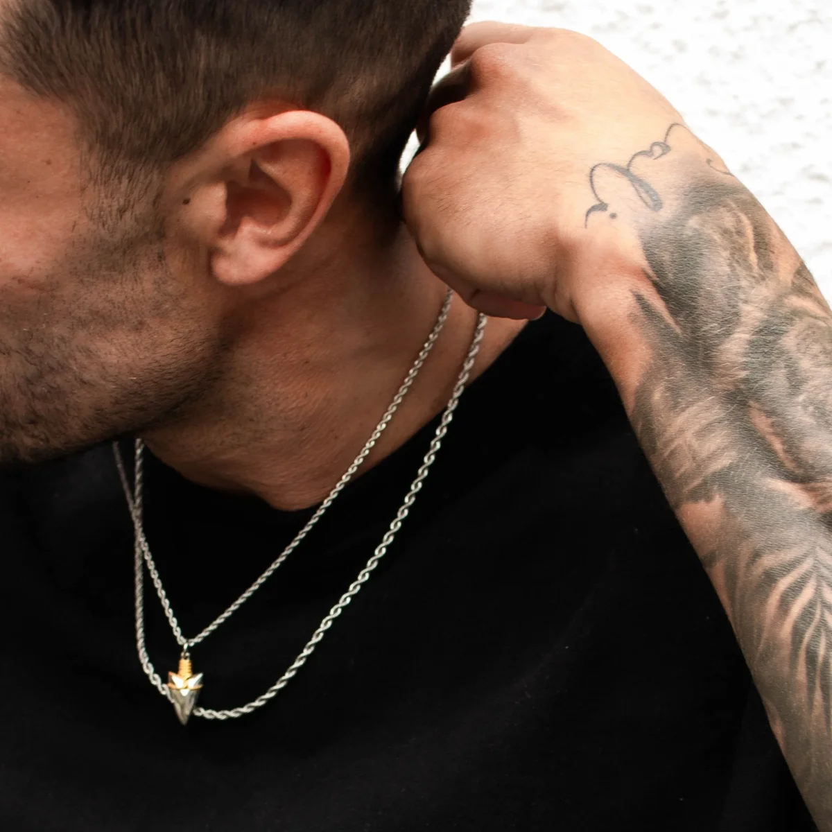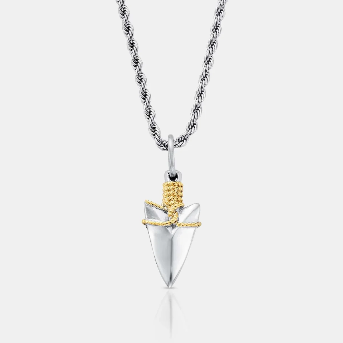 This necklace features a perfectly handcrafted arrow pendant, designed with a bold blend of silver and 18K gold. Just like an arrow in flight, it represents progress, momentum, and the relentless drive to move forward, no matter the obstacles. It’s suspended from a premium silver bail, 3mm rope chain, and finished with our signature scratch and fade-resistant protection.
