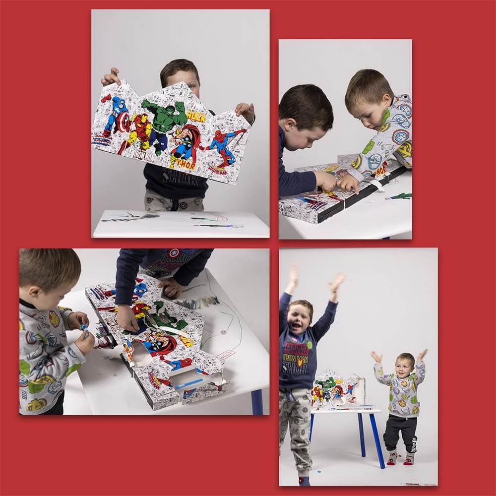 Räkna ner dagarna till julen med denna adventskalender! Kalendern innehåller en rad olika pennor i flera färger, pennvässare, stämplar, bläck till stämplarna, anteckningsblock, lim med glitter och stickers – allt i Marvel-tema med våra favoritsuperhjältar i Avengers-gänget; Captain America, Iron Man, Hulken, Spiderman och Thor.