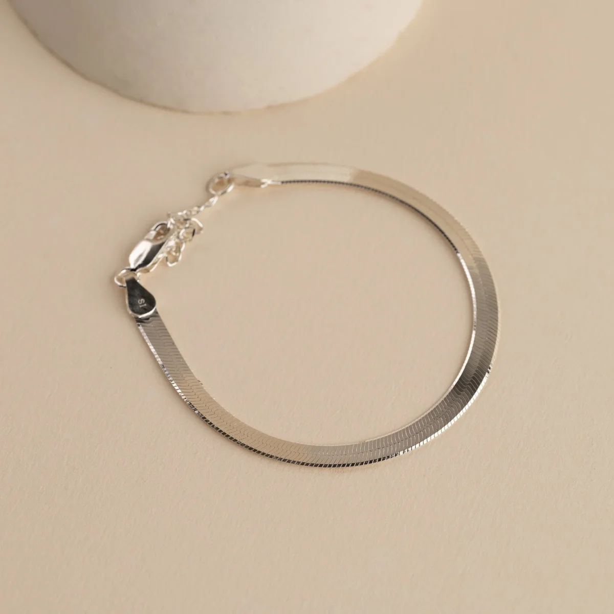Vårt Aya armband är det perfekta tillägget till smyckeskollektionen. Med sin glänsande breda yta och leder som sitter tätt intill varandra har armbandet ett ormliknande uttryck.