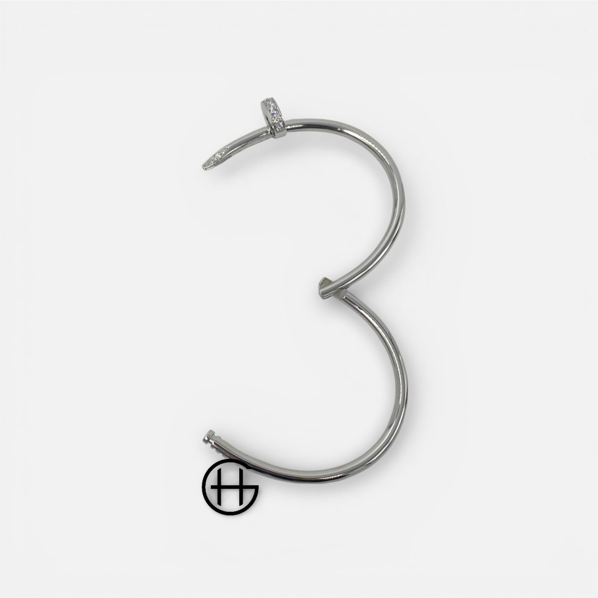 Exklusivt Cartier Juste un Clou armband i 18K vitguld, storlek 17, uttaget 2017. Ett ikoniskt och tidlöst lyxsmycke från Cartiers välkända Juste un Clou-kollektion, känt för sin djärva spikdesign och eleganta uttryck.