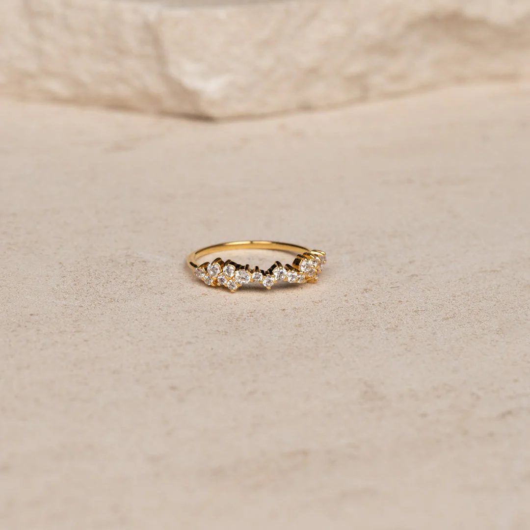 Ring i återvunnet 18 karats förgyllt silver. Ringen är designad med vita kubiska zirkoner i ett ”kluster” på toppen av ringen.