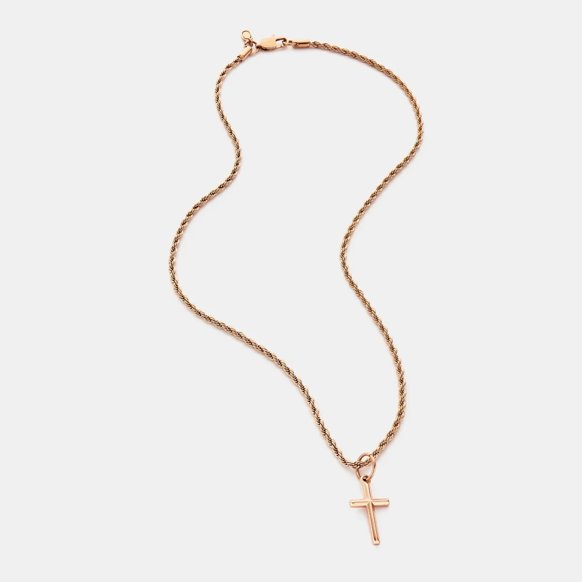 This rose gold pendant showcases a beautifully handcrafted cross, representing unwavering faith and the power of belief. Its warm, versatile tone offers a depth and richness you won’t find with any other metal. Wear it daily as a reminder that success is in your hands, and you have the power to lead yourself wherever you want to go. It’s suspended from a premium bail, 3mm rope chain, and finished with our signature scratch and fade-resistant protection.