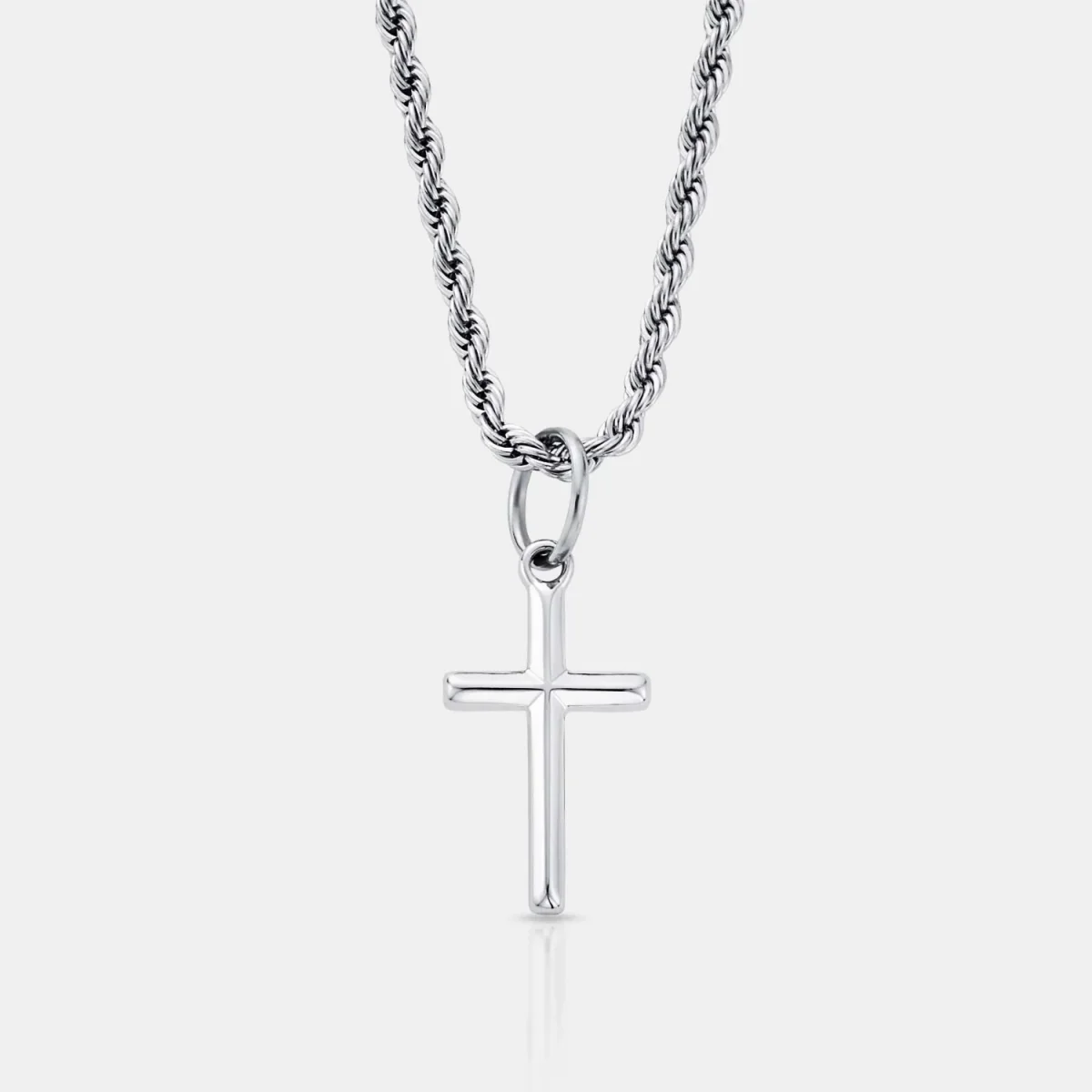 This timeless pendant showcases a beautifully handcrafted silver cross, representing unwavering faith and the power of belief. Wear it daily as a reminder that success is in your hands, and you have the power to lead yourself wherever you want to go. It’s suspended from a premium silver bail, classic 3mm rope chain, and finished with our signature scratch and fade-resistant protection.