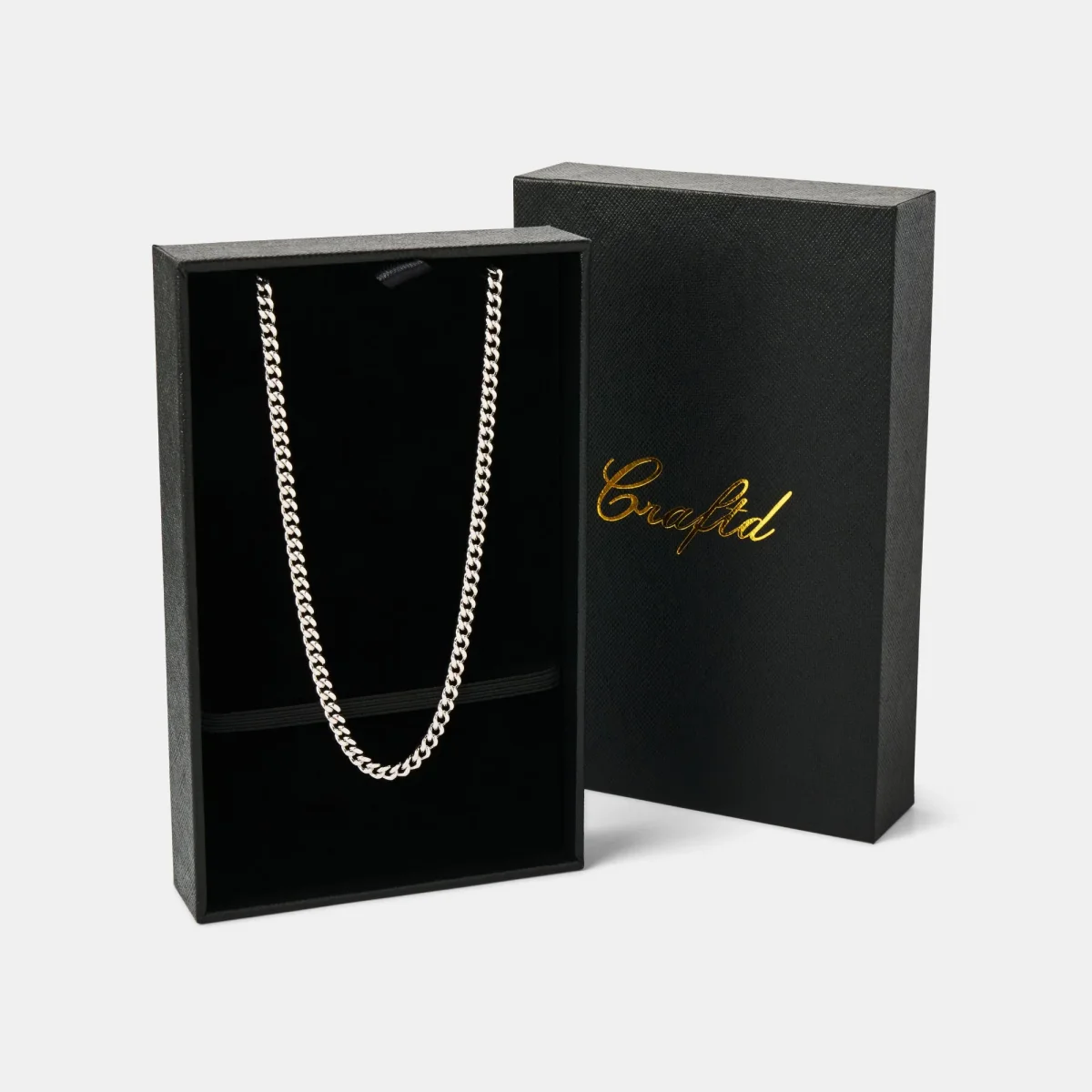 Handcrafted and hallmarked in 925 sterling silver, this classic Cuban feels sharper, heavier and more refined the moment you pick it up. The links are cleaner, the polish hits harder, and it catches the light in a way only real silver can. As a precious metal, it ages better over time, developing the lived-in character Sterling Silver is known for. A timeless piece, and a gift that will mean even more with every year he wears it.