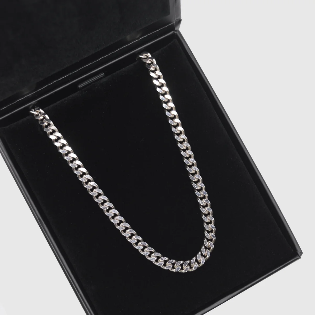 Handcrafted and hallmarked in 925 sterling silver, this classic Cuban feels sharper, heavier and more refined the moment you pick it up. The links are cleaner, the polish hits harder, and it catches the light in a way only real silver can. As a precious metal, it ages better over time, developing the lived-in character Sterling Silver is known for. A timeless piece, and a gift that will mean even more with every year he wears it.