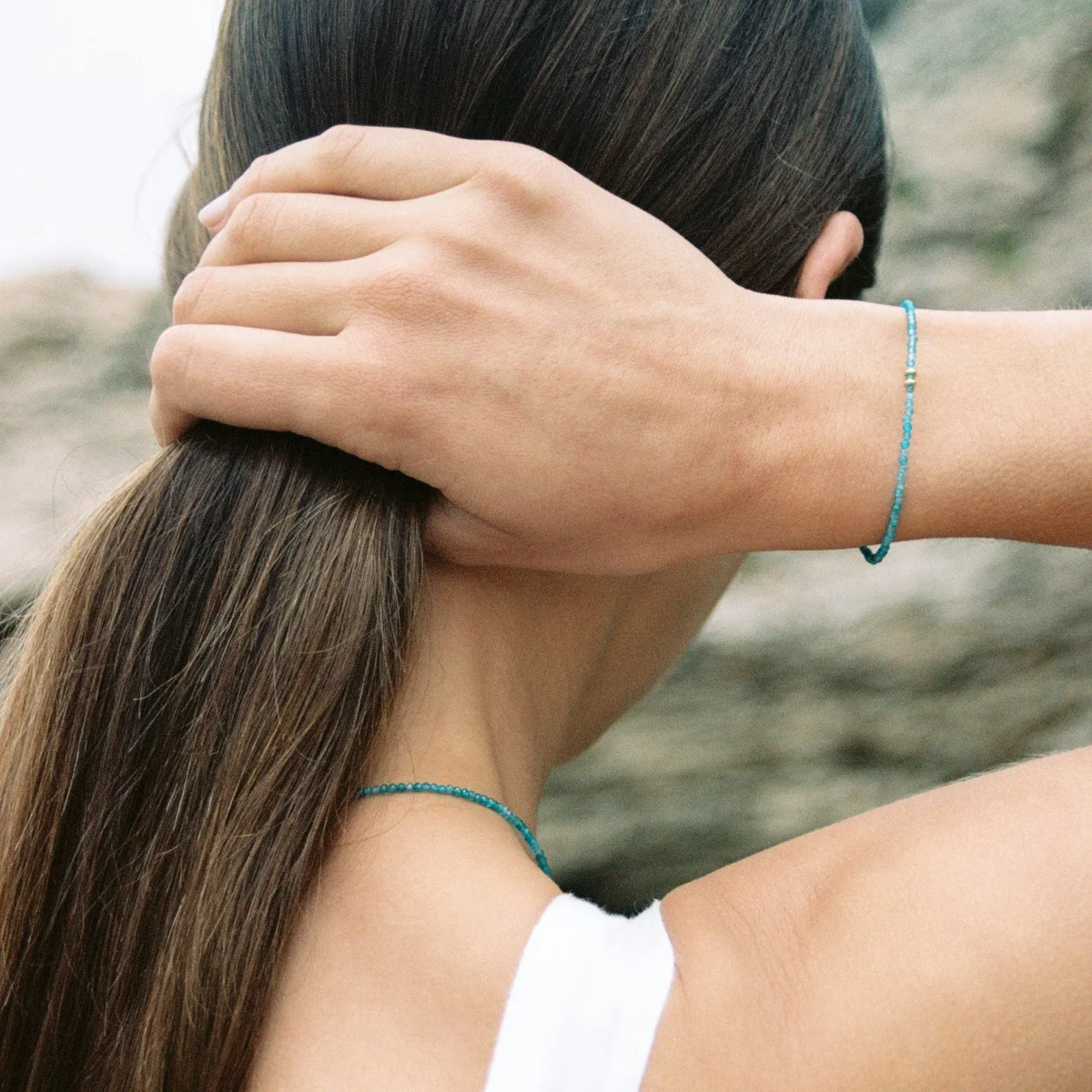 De fasettslipade apatitstenarna skapar ett levande spel i ljuset och ger ett elegant och stilrent uttryck. Halsbandet kan bäras för sig självt för en minimalistisk look eller kombineras med andra smycken för en mer personlig stil. Perfekt för dig som vill ha ett smycke med en vacker blå färg och fina detaljer.