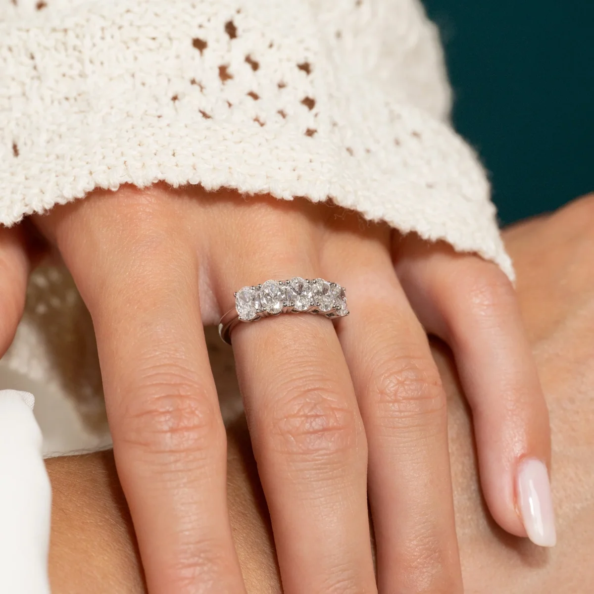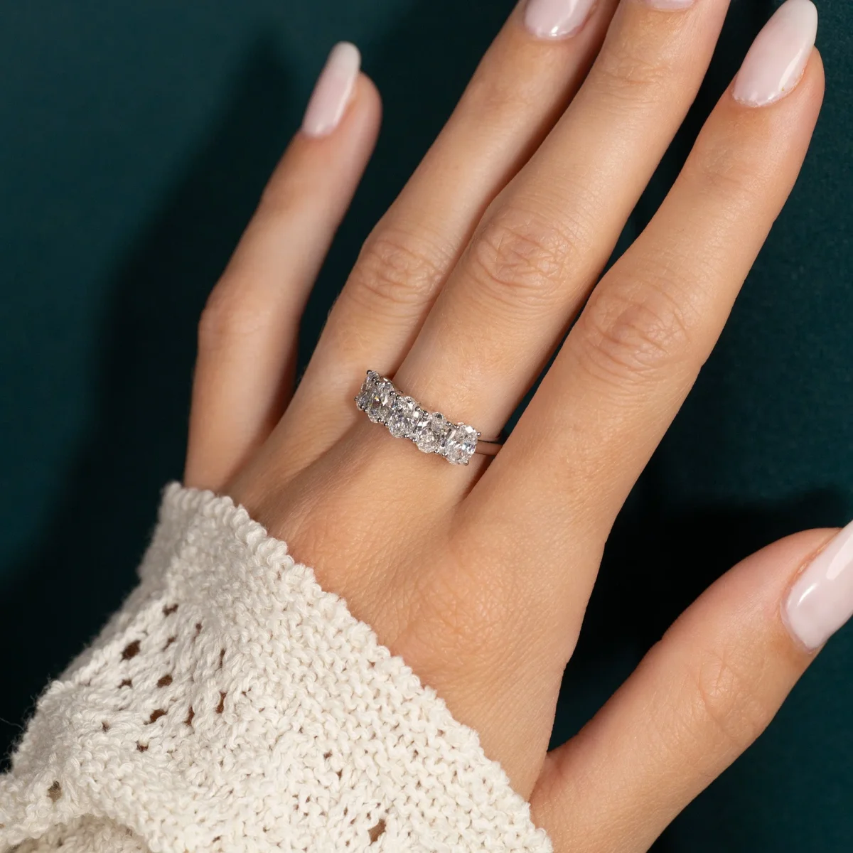 FIVE STONE OVAL-CUT LAB-DIAMOND RING – 2.0ct – WG