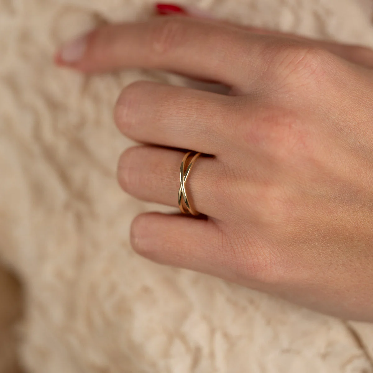 Larissa-ringen är skapad i 100% återvunnet massivt 9 karat guld. Det är en otroligt vacker och elegant korsring som du enkelt kan bära ensam eller tillsammans med våra andra ringar.