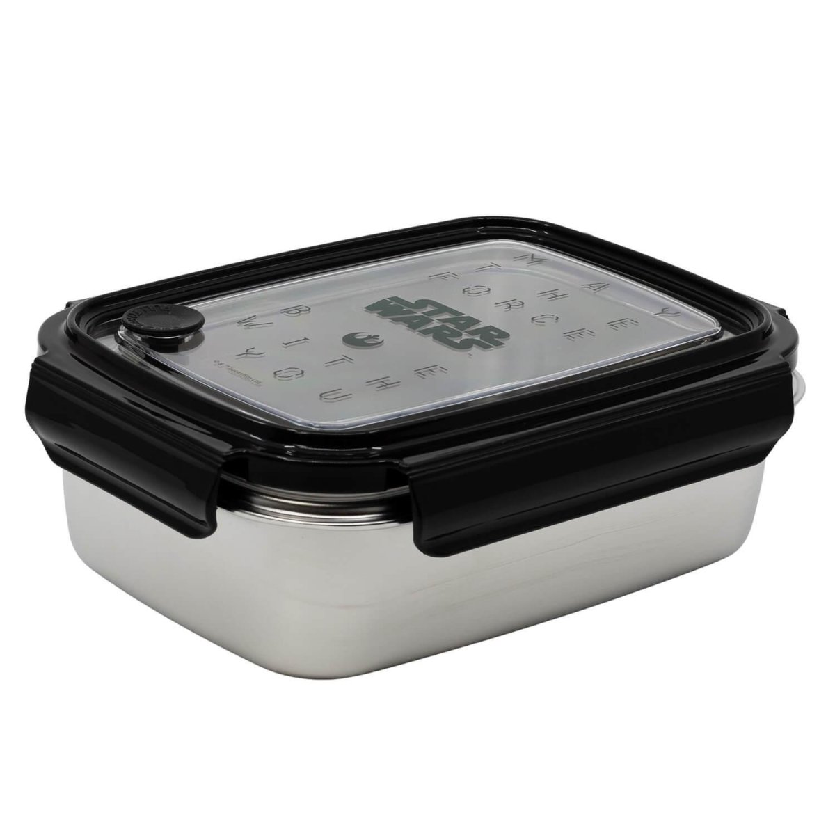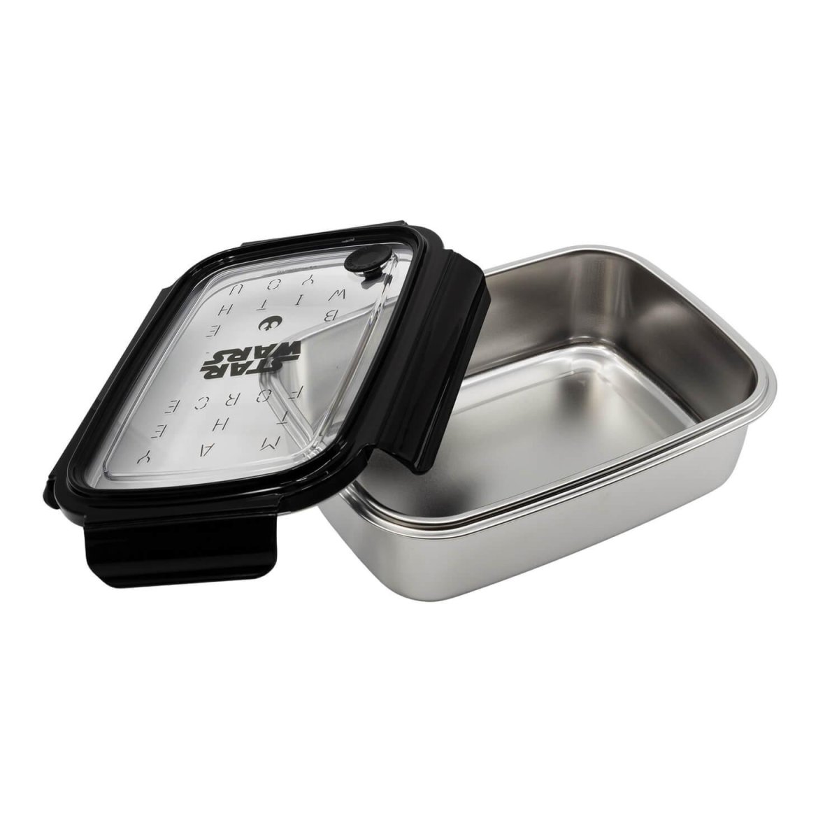 Gedigen lunchlåda i rostfritt stål med tätt förslutande silikonlock. Lådan har en stor kapacitet på 1020ml och är BPA-fri.Lunchlådan har ett motiv i form av rebellalliansens emblem och texten "May The Force Be With You" från Star Wars. Längd 19,5 cmHöjd 7,2 cmBredd 14,2 cm