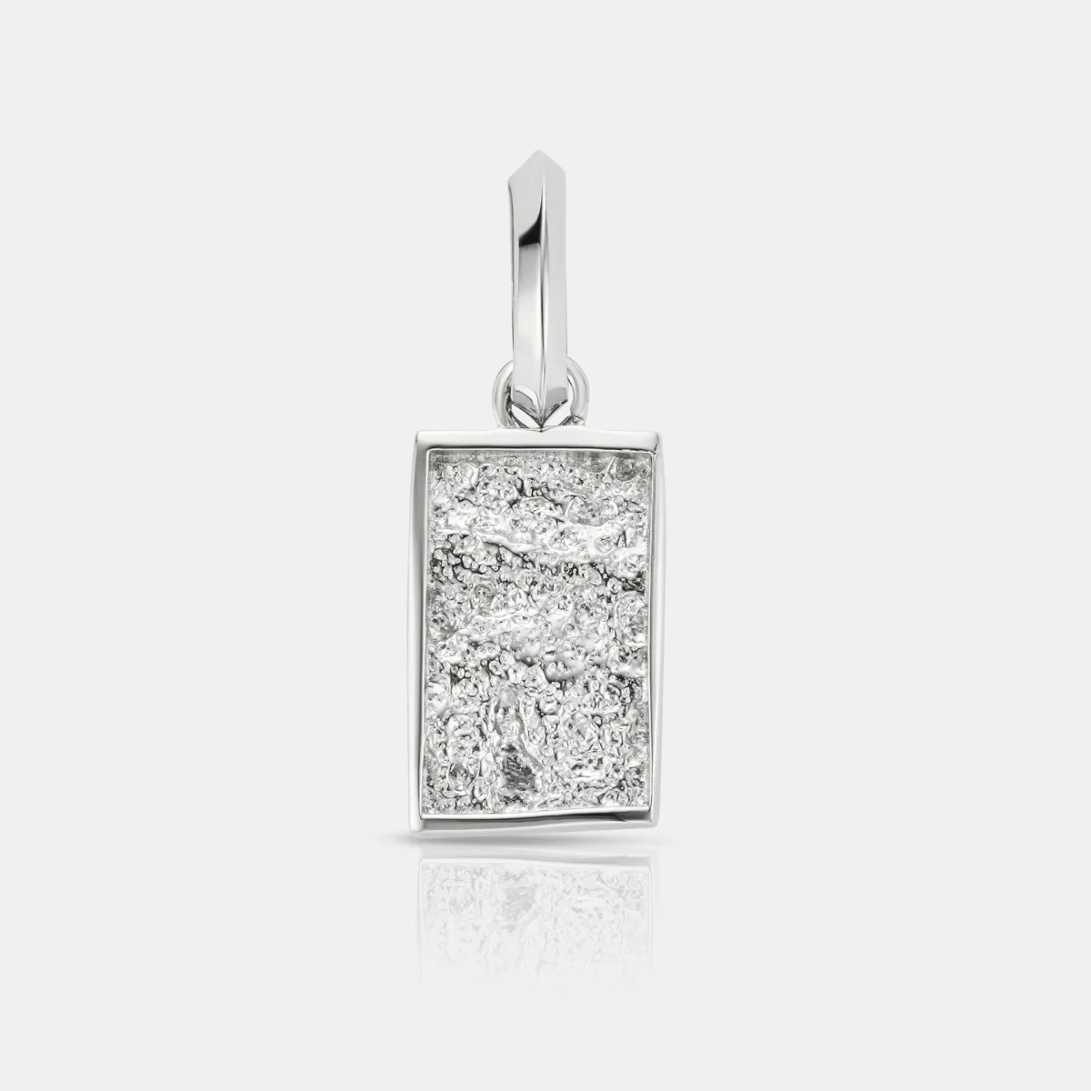 This mini silver pendant features a hammered finish that catches the light from every angle. Designed for everyday wear, it adds texture and character without ever feeling overdone. Clean, versatile, and easy to style, it works just as well on its own as it does layered with other pendants.