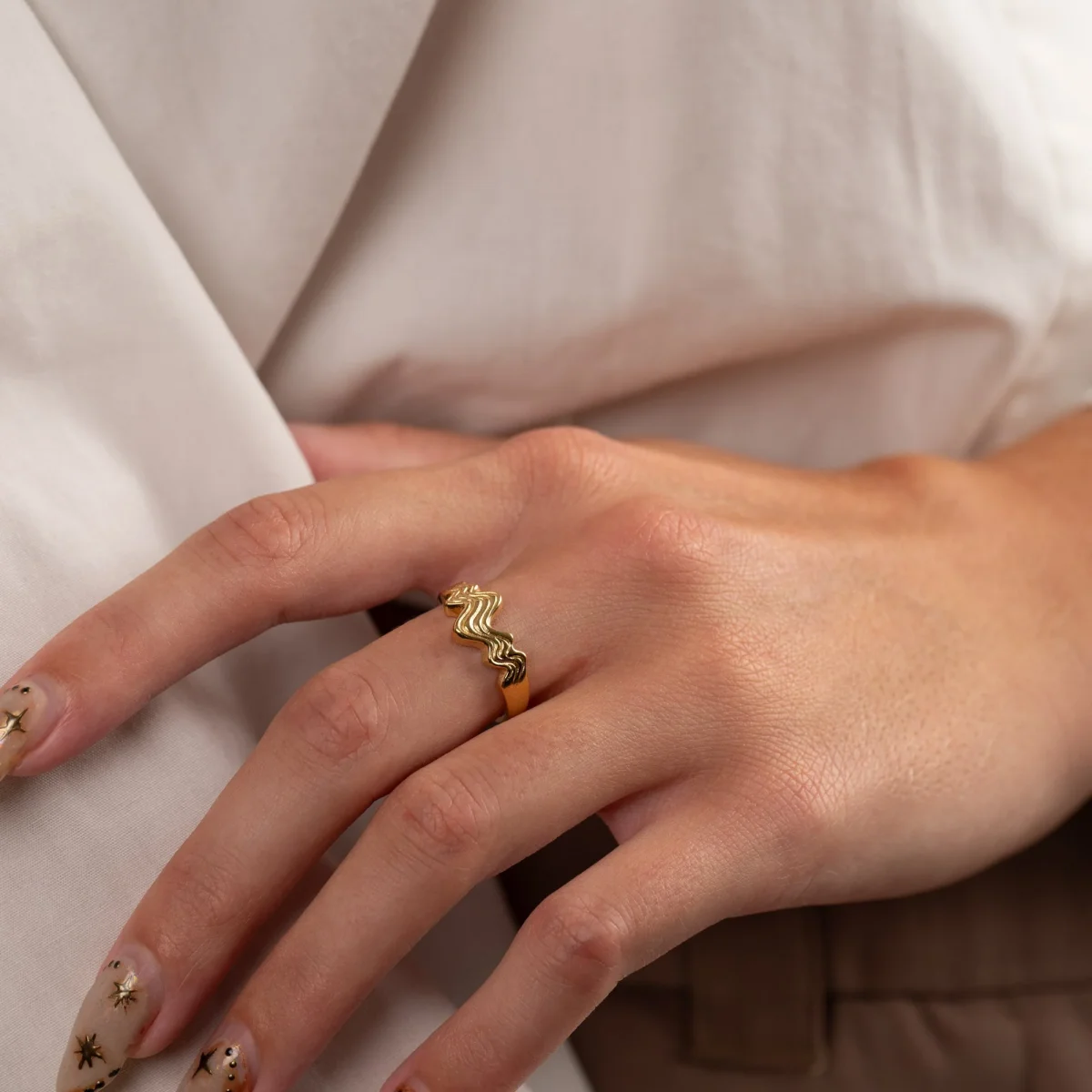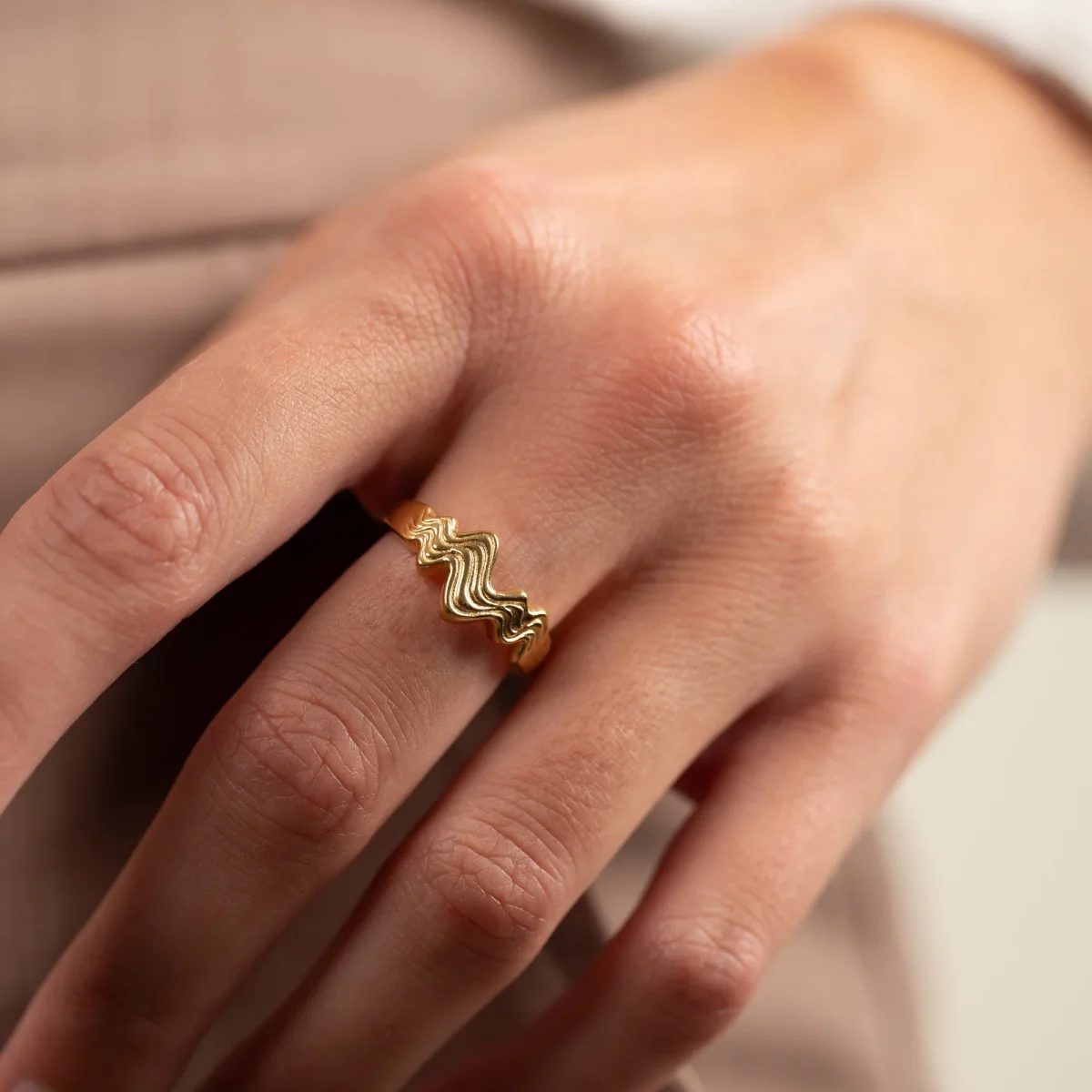 Vår Moana-ring har en vacker dynamisk design inspirerad av havet. Ringen har några mjuka gravyrer som ger en illusion av att vågor rör sig. Om du alltså gillar naturinspirerade och unika smycken är våra Moana-smycken förmodligen precis rätta för dig.