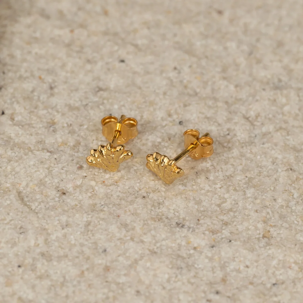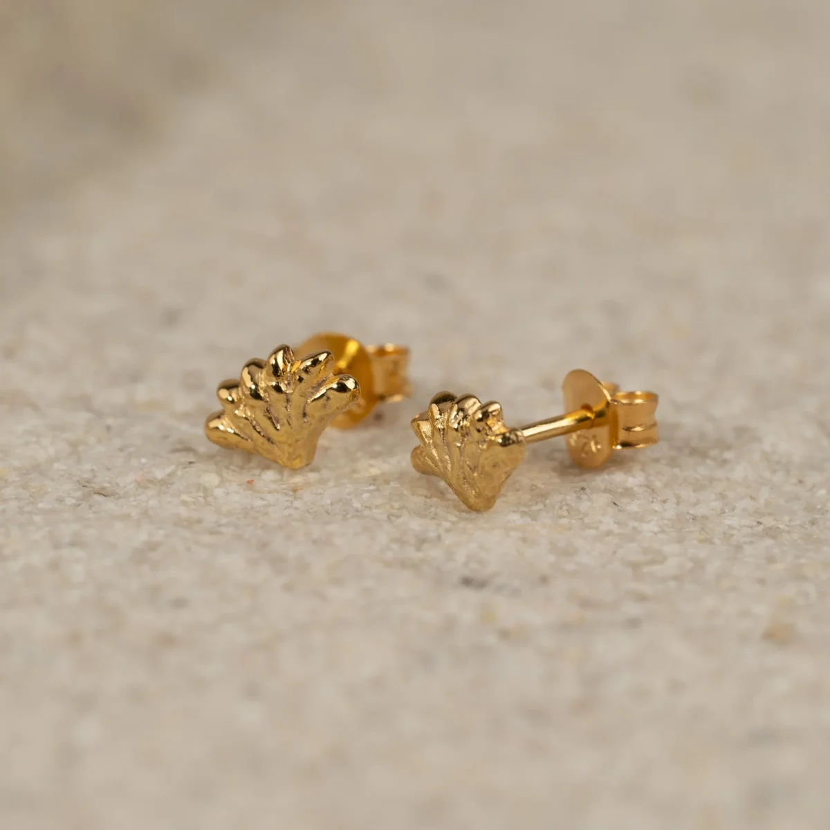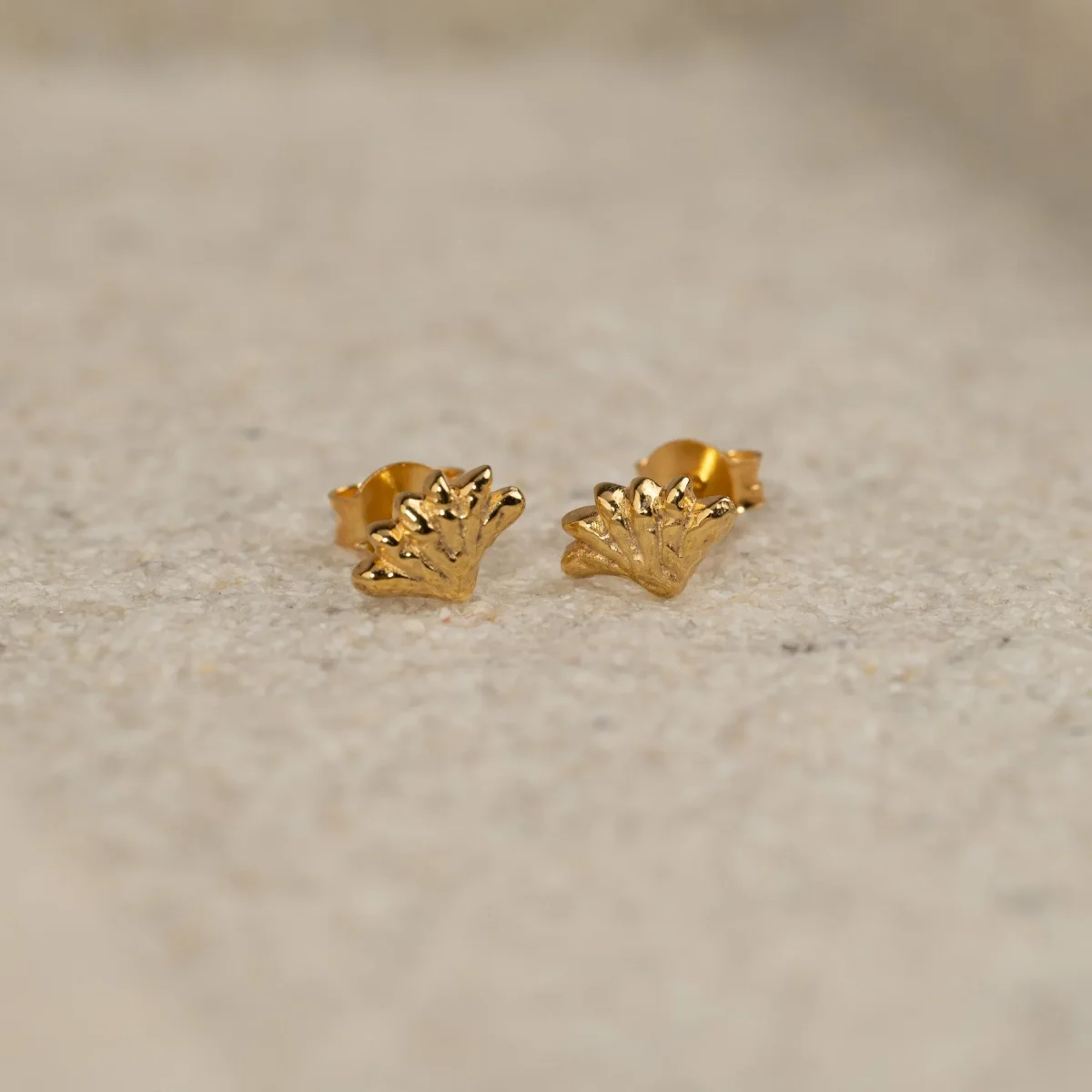 Örstift i 100% återvunnet 18 karat förgyllt 925 sterlingsilver och designade som musslor med en rustik look som tillför unika och eleganta detaljer. De mäter 8 mm i bredd.