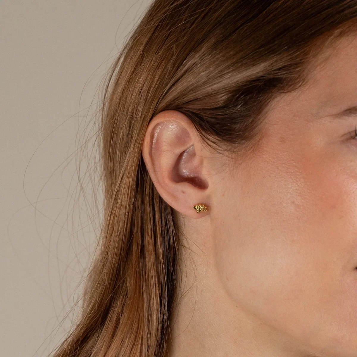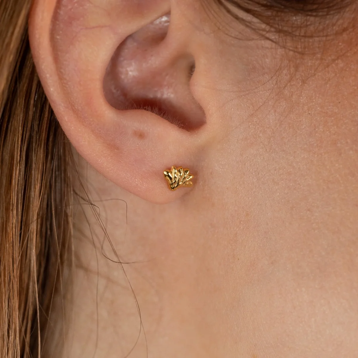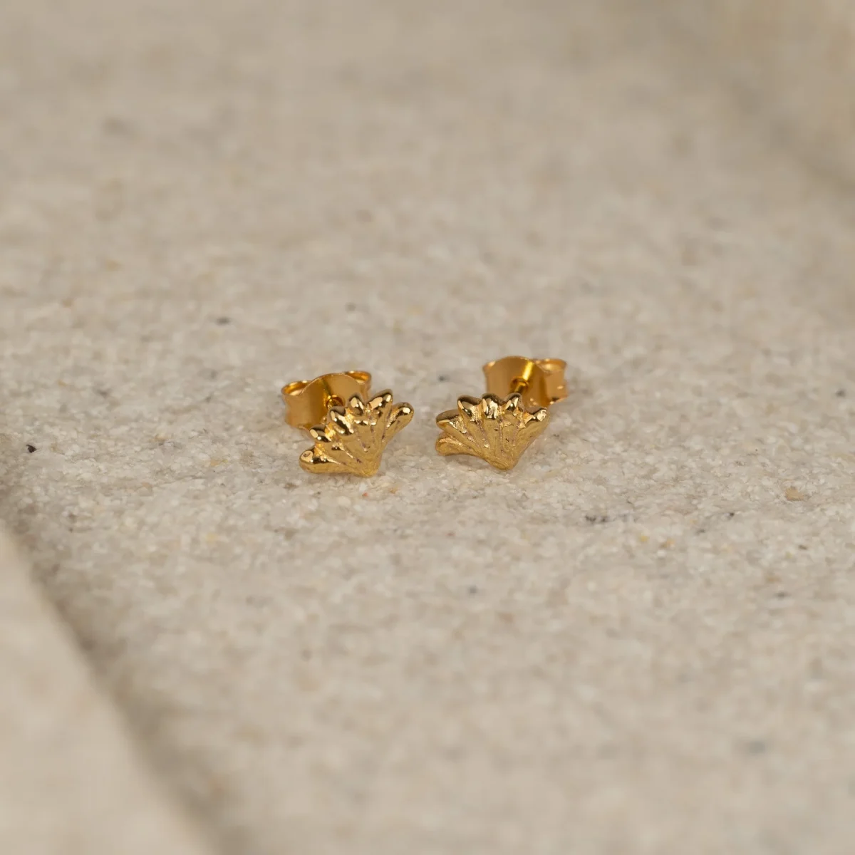 Örstift i 100% återvunnet 18 karat förgyllt 925 sterlingsilver och designade som musslor med en rustik look som tillför unika och eleganta detaljer. De mäter 8 mm i bredd.