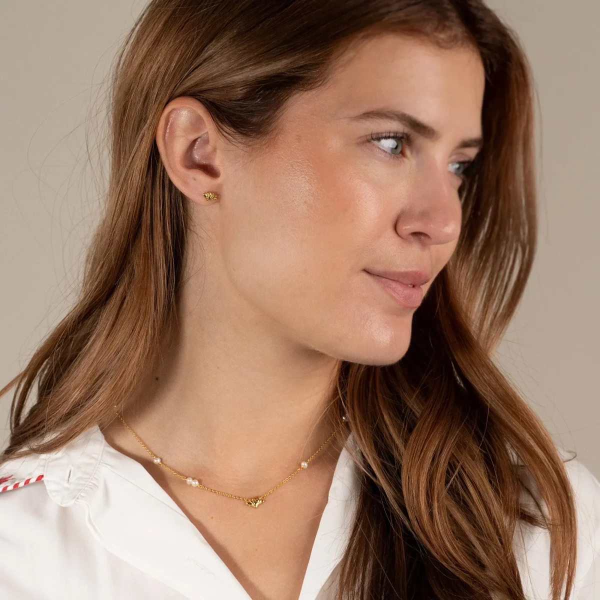 Örstiften är en del av Shelly-serien, där de rustika musselskalorna finns i både halsband och örhängen med och utan pärlor.