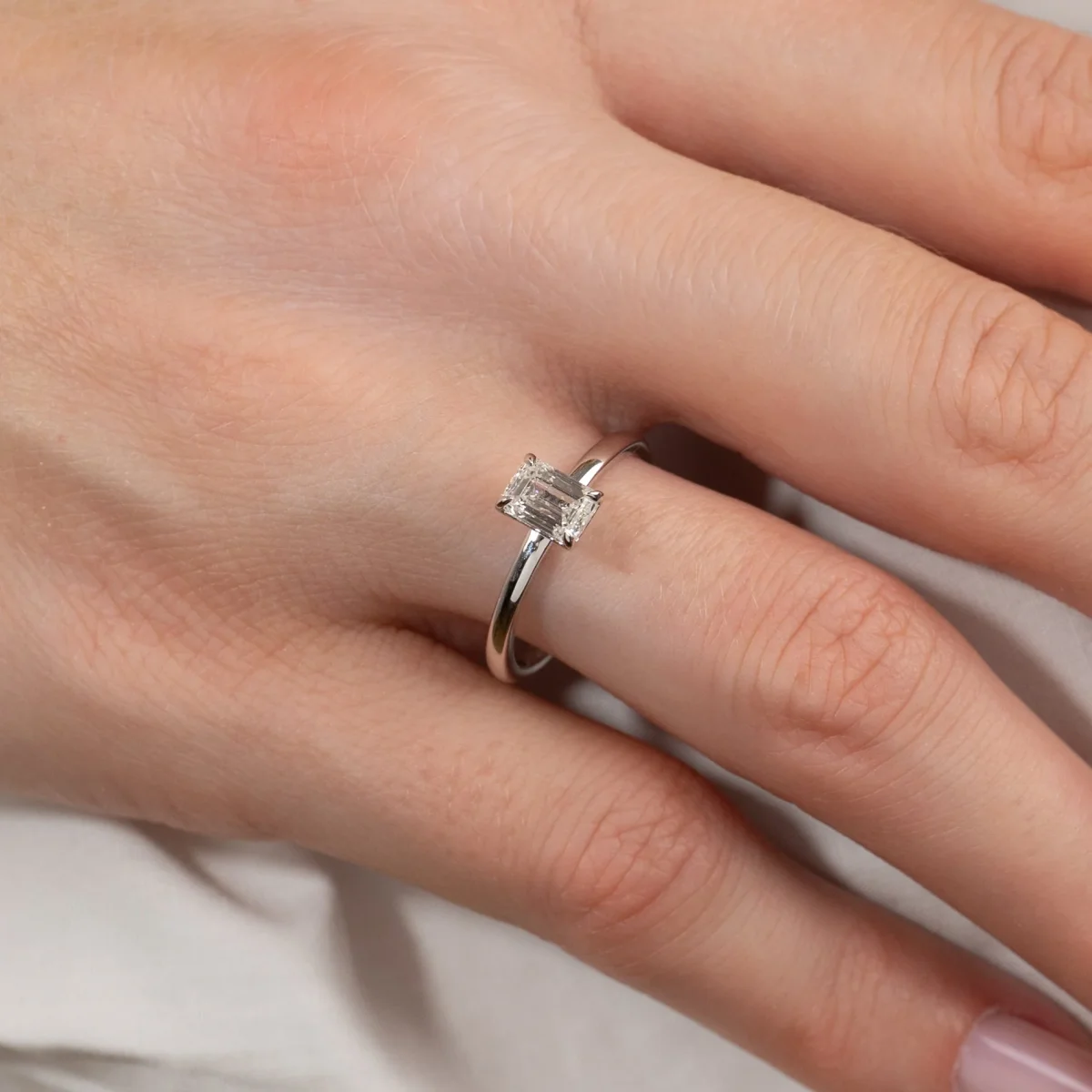 SOLITAIRE EMERALD-CUT LAB-DIAMOND RING – 0.75ct – WG
